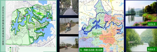 ☆ 百公里绿道。后官湖郊野绿道具备湖泊修复、生态保护、休闲游憩、旅游经济四大功能,是蔡甸独特的绿道文化品牌。后官湖郊野绿道建设进展较快,其中10公里白莲湖示范段已建成,10余公里绿道路基已形成,碎石路面已铺设。今冬明春区农投公司将继续建设110公里的后官湖郊野绿道,沿线街镇做好土地流转工作。2013年完成整个环后官湖绿道的基础施工,加快完成绿道驿站、游艇码头及环湖自行车赛道建设。